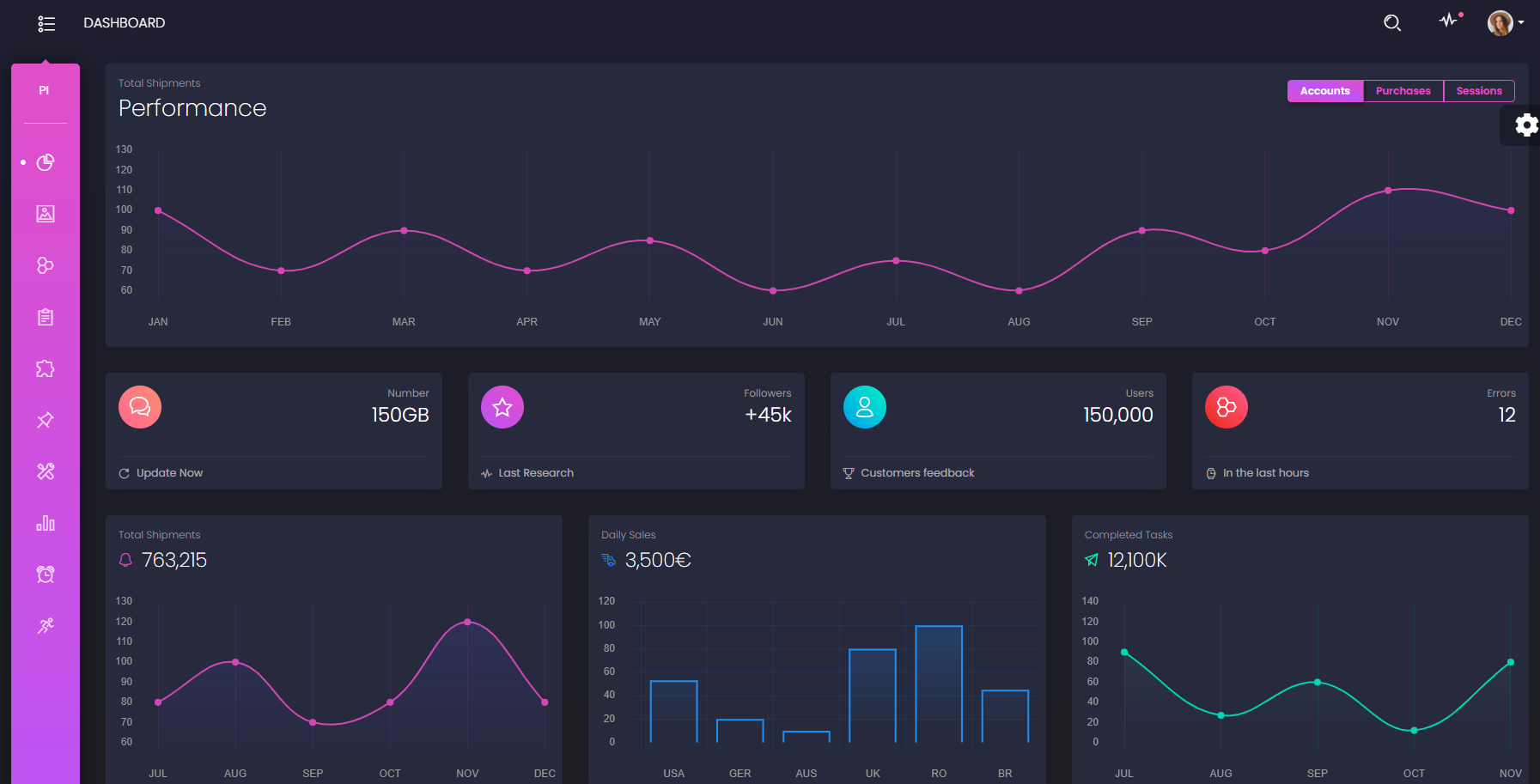 You will save a lot of time going from prototyping to full-functional code, because all elements are implemented. This Dashboard is coming with pre-built examples, so the development process is seamless, switching from our pages to the real website is very easy to be done.