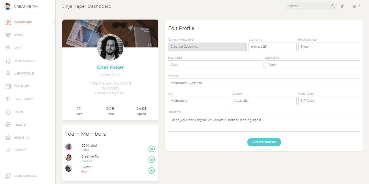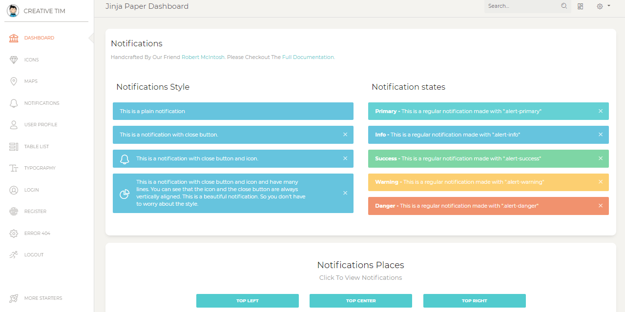 Paper Dashboard - a free and open-source admin dashboard provided by Creative-Tim agency.