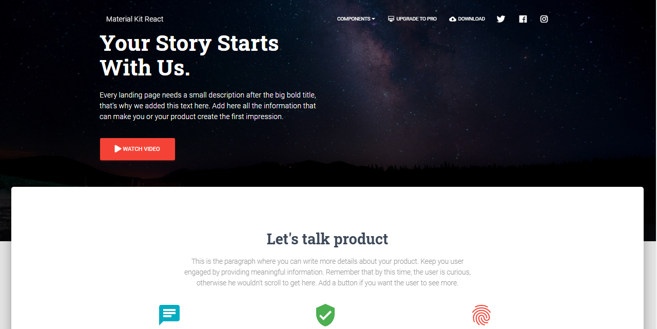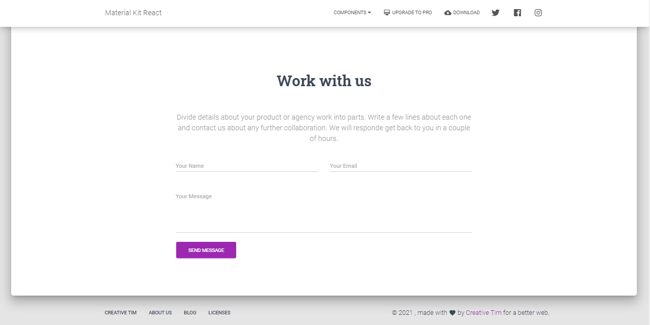 Material Kit React - an open-source and free React Template crafted by Creative-Tim. Source code available for download on Github.