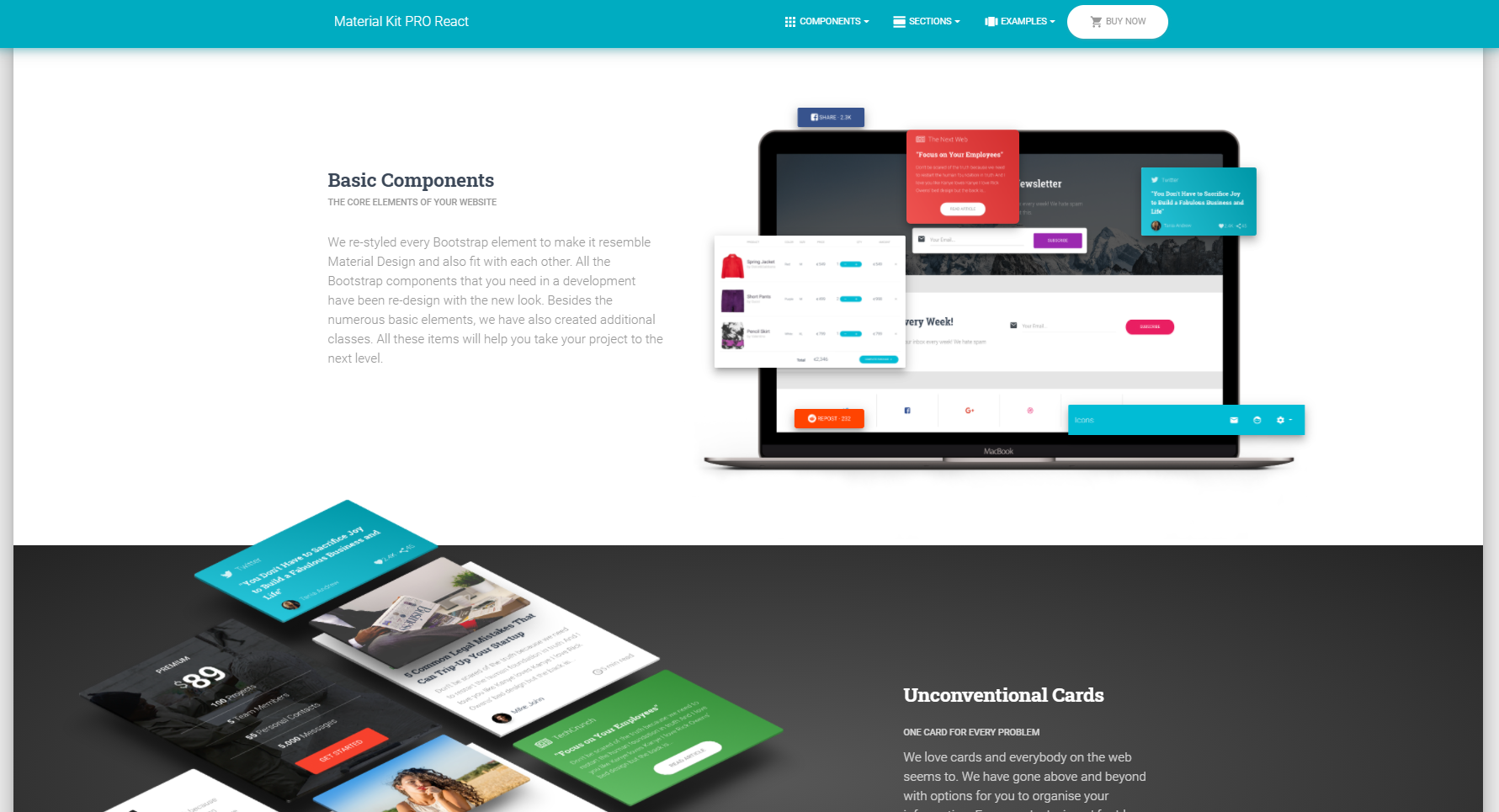 This new design has elements that have been the result of research regarding ink and paper and the way objects and materials interact in real life. The result is a beautiful and consistent set of elements that can get you started with your next project. Material Kit React is a great tool if you are looking to create a web presence for your Android application and need to be consistent, leaving the impression of visually similar elements. It is also a great resource in its own right, looking gorgeous and helping you build your web pages.